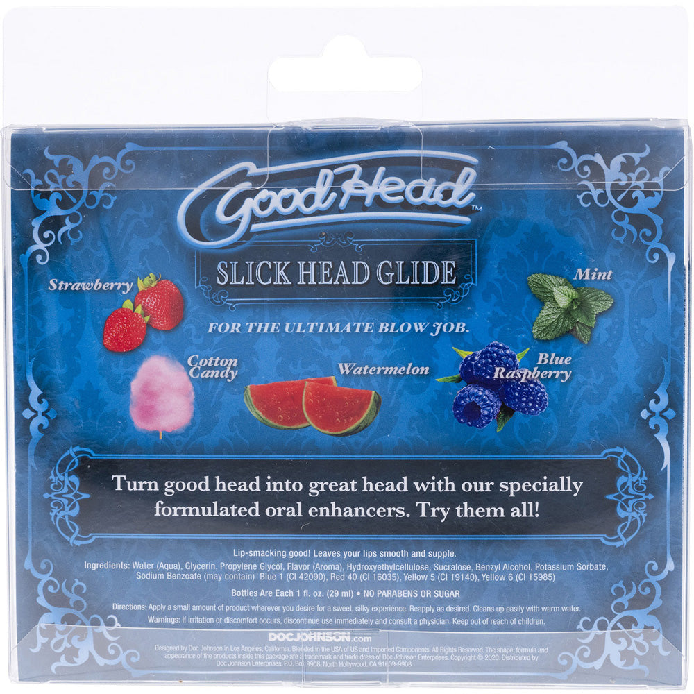 Experience heightened pleasure and comfort with GoodHead Slick Head Glide 1 oz. These water-based lubricants are available in five delightful flavors: Strawberry, Cotton Candy, Watermelon, Blue Raspberry, and Mint. Perfect for all your intimate encounters, these silky glides minimize friction, ensuring a smoother and more enjoyable experience. Plus, they're body-safe and vegan, promoting sexual health and wellness with every use. Indulge in delicious sensations while staying worry-free about your well-being.