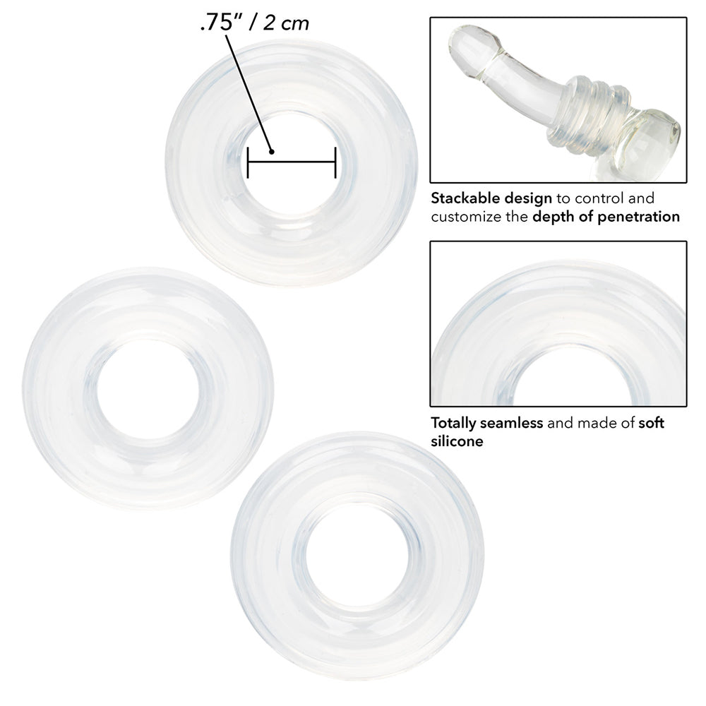 Experience true self-connection with the innovative, body-safe Set Of 3 Silicone Stacker Rings. This premium product is engineered for enhanced arousal and deeper intimacy, whether used solo or with a partner. Made with body-safe materials, Set Of 3 Silicone Stacker Rings is a testament to modern pleasure products that support self-exploration, stress relief, and overall sexual health. From daily wellness rituals to passionate escapes, it delivers consistent, empowering satisfaction. Set Of 3 Silicone Stacker RingsThe Set of 3 Silicone Stacker Rings will transform uncomfortable penetration into a truly plush and comfortable experience. The flexible cock rings can be stacked or used independently to help control and customize depth of penetration. Our customizable silicone ring stack fit snuggly on you to provide a soft, pillow-y cushion for your partner. The stretchy rings give you total control of penetration depth for ultimate in comfortable penetration.Three soft, stretchy silicone rings let you to easily control and customize the depth of penetration. The ultra-stretchy sleeve is made from a phthalate-free, body safe Silicone to ensure peace of mind through every passionate moment. This durable rings are easy-to-use, easy-to-clean and requires no special care. Prior to and after each use, wash rings internally and externally with warm water and soap, then disinfect with the Universal Toy Cleaner.