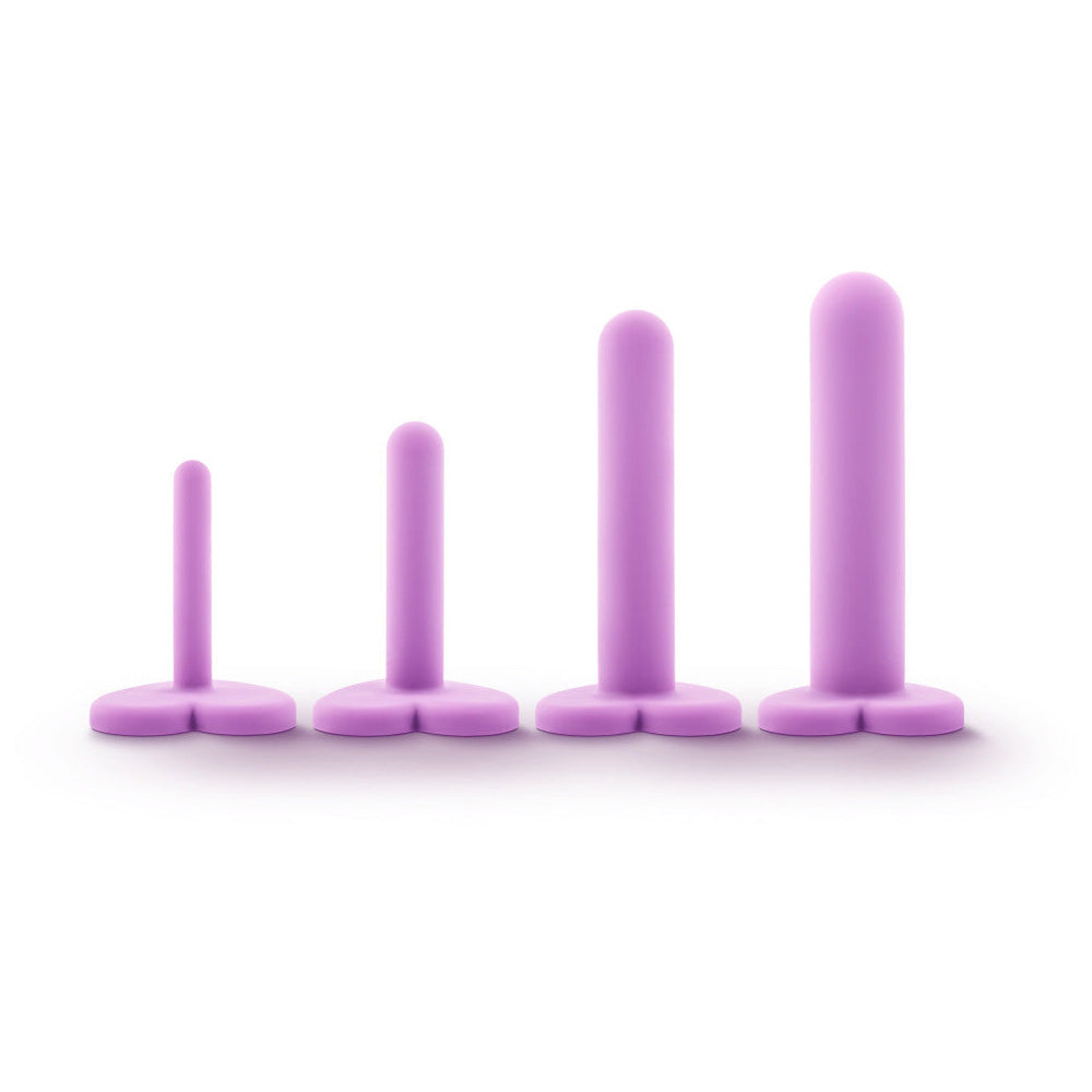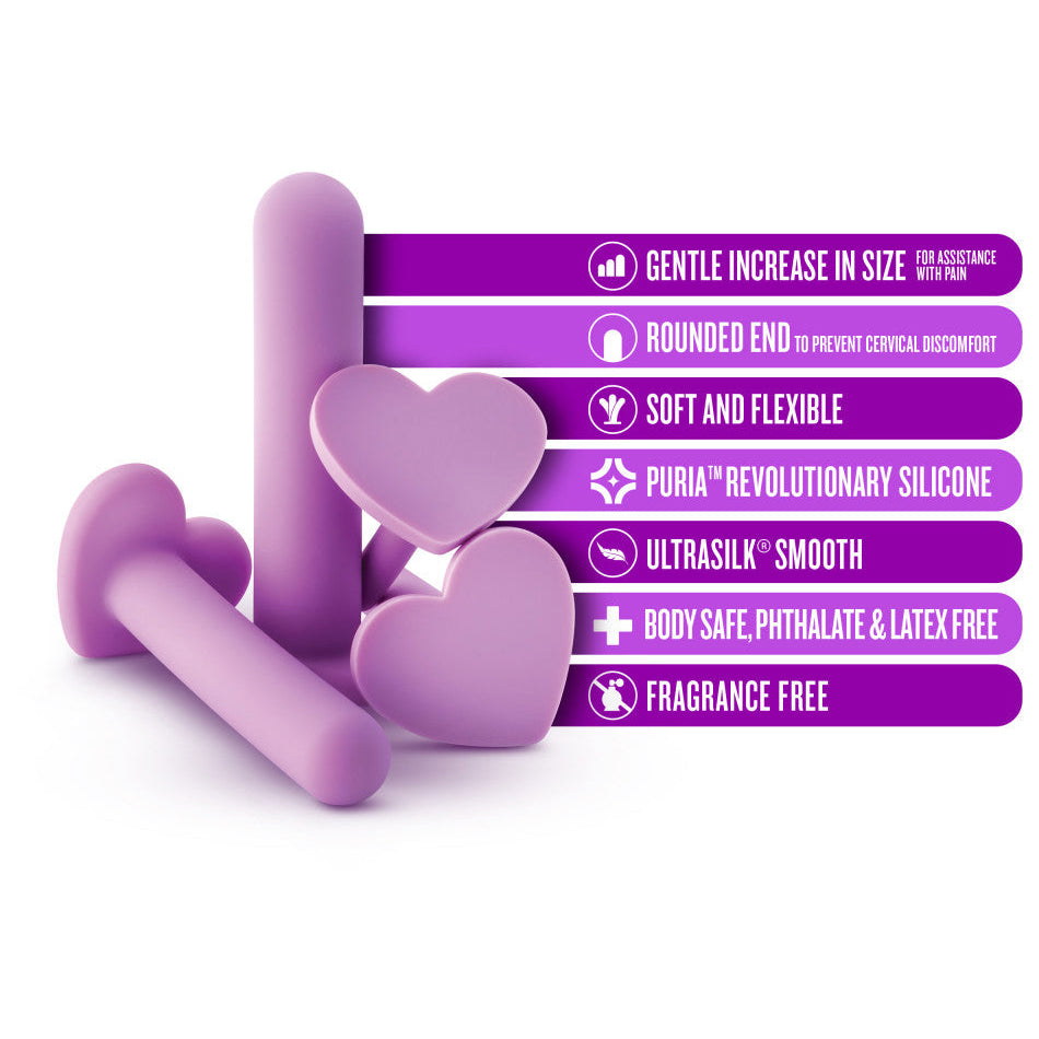 Introducing the Wellness Silicone Dilator Set, a 4-piece kit meticulously crafted for your comfort and well-being. These vaginal dilators feature velvety-smooth, soft silicone and rounded tips to prevent cervical irritation. With sizes starting at a modest 0.5 inches in width, this set allows you to progress at your own pace. The heart-shaped bases add a delightful touch. Use your preferred high-quality water-based lubricant for easy insertion. Made with Ultrasilk™ Smooth and Puria™ Platinum-Cured Silicone, these dilators are body-safe, free from fragrances, phthalates, paraffins, or latex. Enhance your intimate wellness journey with this hypoallergenic and easy-to-clean dilator set, ranging from 3.5 to 5.75 inches in length and 0.5 to 1.25 inches in width. Each kit contains 6 sets for a fuller experience.